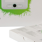 Новый ридер поставляется в более компактной упаковке. Дизайн коробки схож с боксом, в котором продаются модели линейки Sony Reader. Тонкая коробка состоит из двух отделений: в верхнем находится ридер, а в нижнем - кабель для подключения к компьютеру и зарядки устройства. Комплектация как и в прошлом минимальная - обложку и зарядное устройство от розетки надо покупать отдельно.