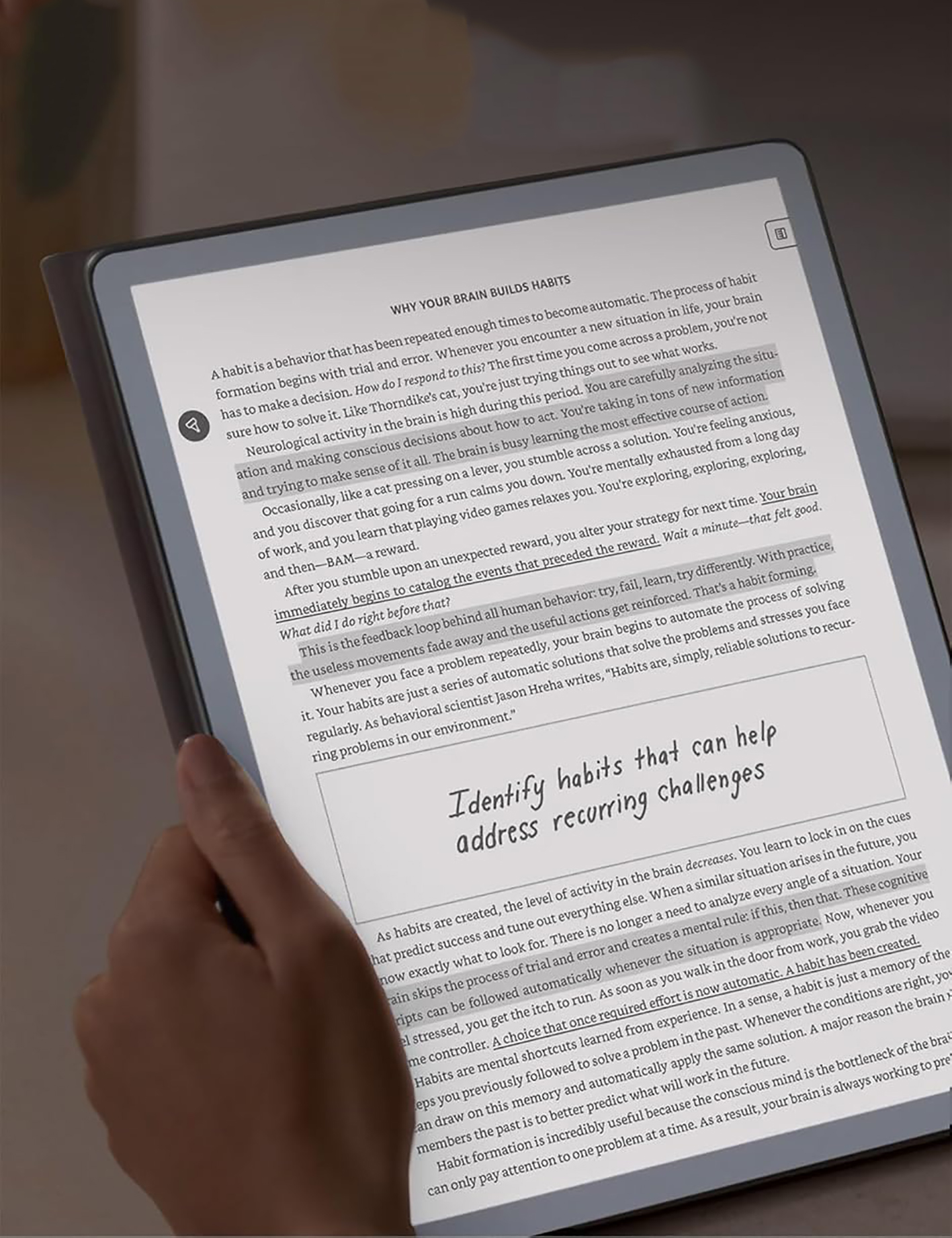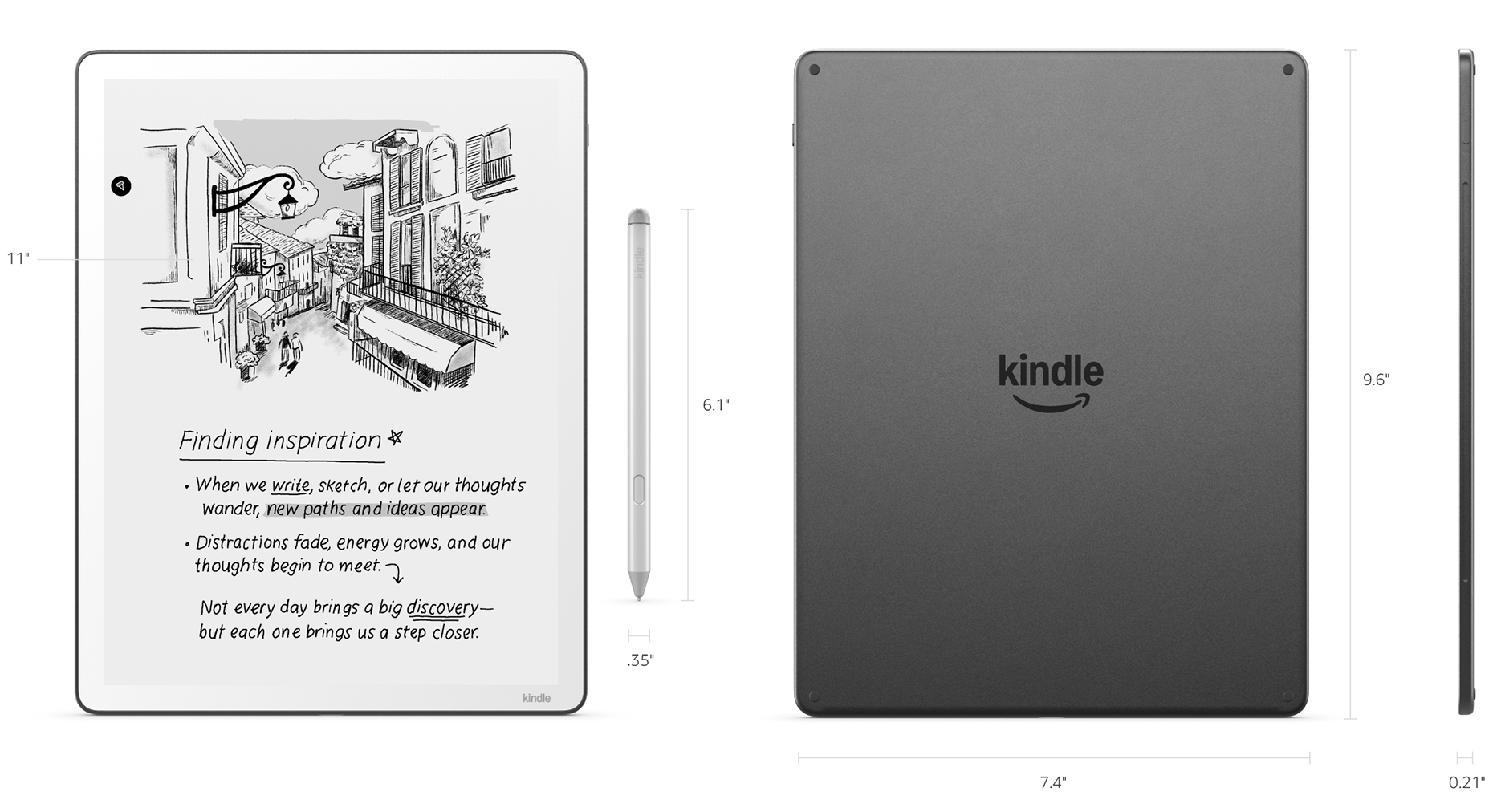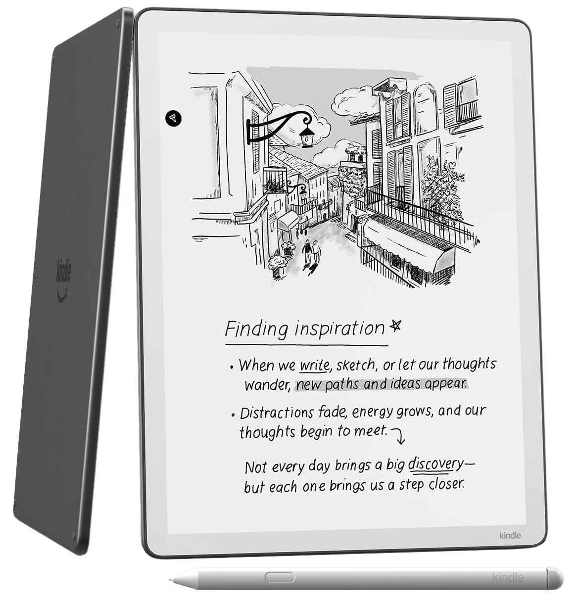 Перед Вами 11-дюймовый ридер Amazon Kindle Scribe 3. Выпуск 2025 года отличается увеличенной диагональю экрана, возросшей скоростью работы и новыми программными функциями. Электронная книга имеет интегрированный перьевой ввод, что дает возможность рисовать на экране, оставлять заметки в тексте, сохраняя их в памяти устройства. Функция «Профили» позволяет запоминать пользовательские настройки для чтения, создавать отдельные профили для книг, учебников и комиксов. Улучшенный фирменный стилус Premium Pen входит в комплект поставки. Обновленная 11-дюймовая версия Kindle Scribe стала заметно быстрее: повысилась производительность и скорость работы. Внедренные инструменты AI помогут преобразовать рукописные заметки в цифровой текст, функция Active Canvas позволяет писать и оставлять комментарии прямо на страницах книг. Одним из преимуществ данной модели является интеграция с сервисами Google Диск и Microsoft One: пользователь может легко импортировать и экспортировать документы и PDF-файлы. Стилус Kindle Scribe Premium Pen, разработанный специально для электронной книги Kindle Scribe, имеет настраиваемую кнопку быстрого доступа и ластик с мягким наконечником. Улучшенное перо обеспечивает естественное трение, как при рисовании на обычной бумаге. Стилус обладает высокой точностью и моментальным откликом.
