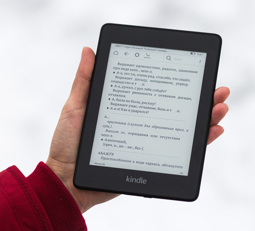 Самый тонкий и легкий ридер линейки Kindle Paperwhite представлен в 2018 году. Новая модель получила экран вровень с корпусом и плотностью точек 300 ppi. Бумагоподобный дисплей не бликует, и выглядит как настоящая бумага даже на ярком солнце. |